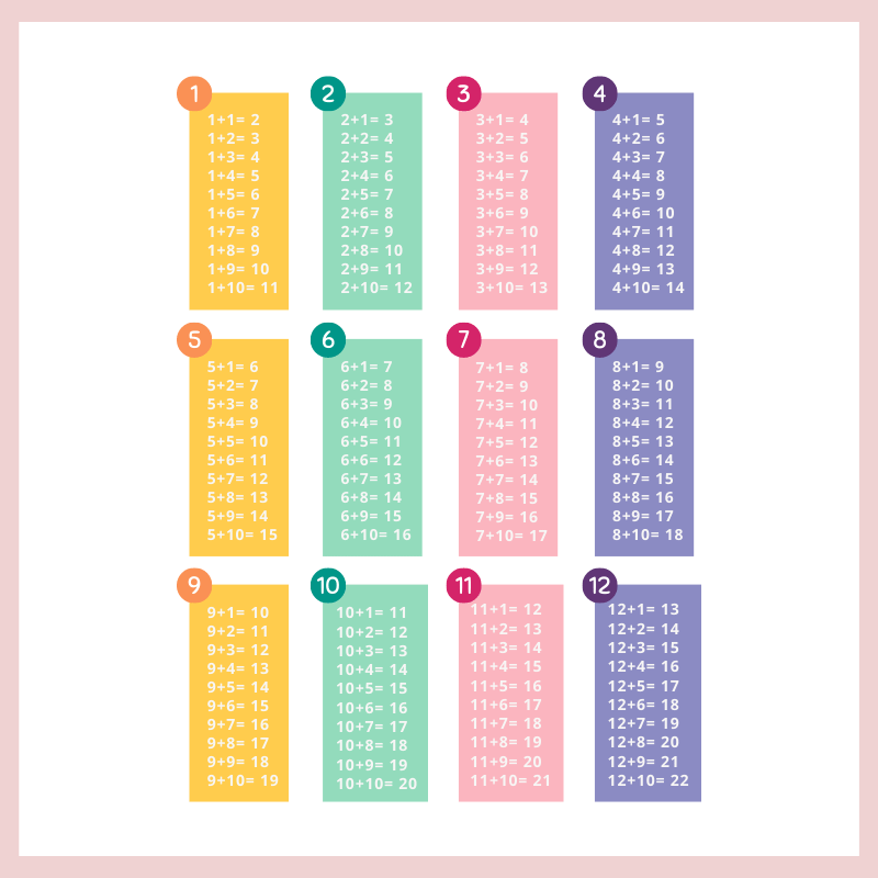 The Addition Tables Chart is the perfect resource for teaching children basic addition.Β