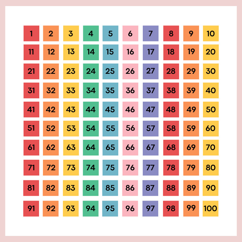 The Printable Numbers Chart 1-100 is an essential tool for teaching children the fundamentals of counting and number recognition. This chart is designed with colorful and sleek design.